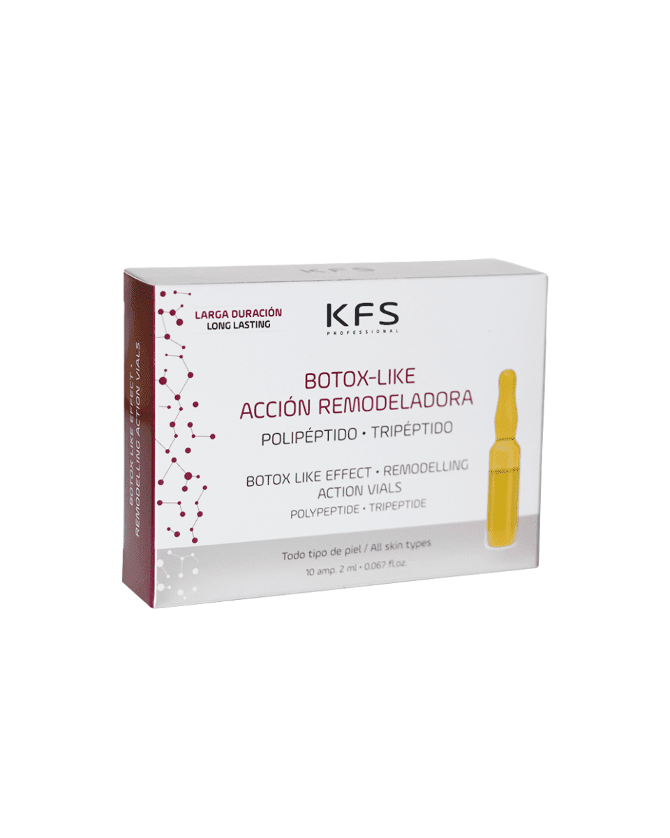 Descubre el poder de nuestras Ampollas Faciales Botox-Like de KFS, diseñadas para ofrecer un efecto antienvejecimiento de larga duración. Estas ampollas son ideales tanto para pieles jóvenes como maduras, ayudando a prevenir y suavizar las arrugas superficiales y profundas.