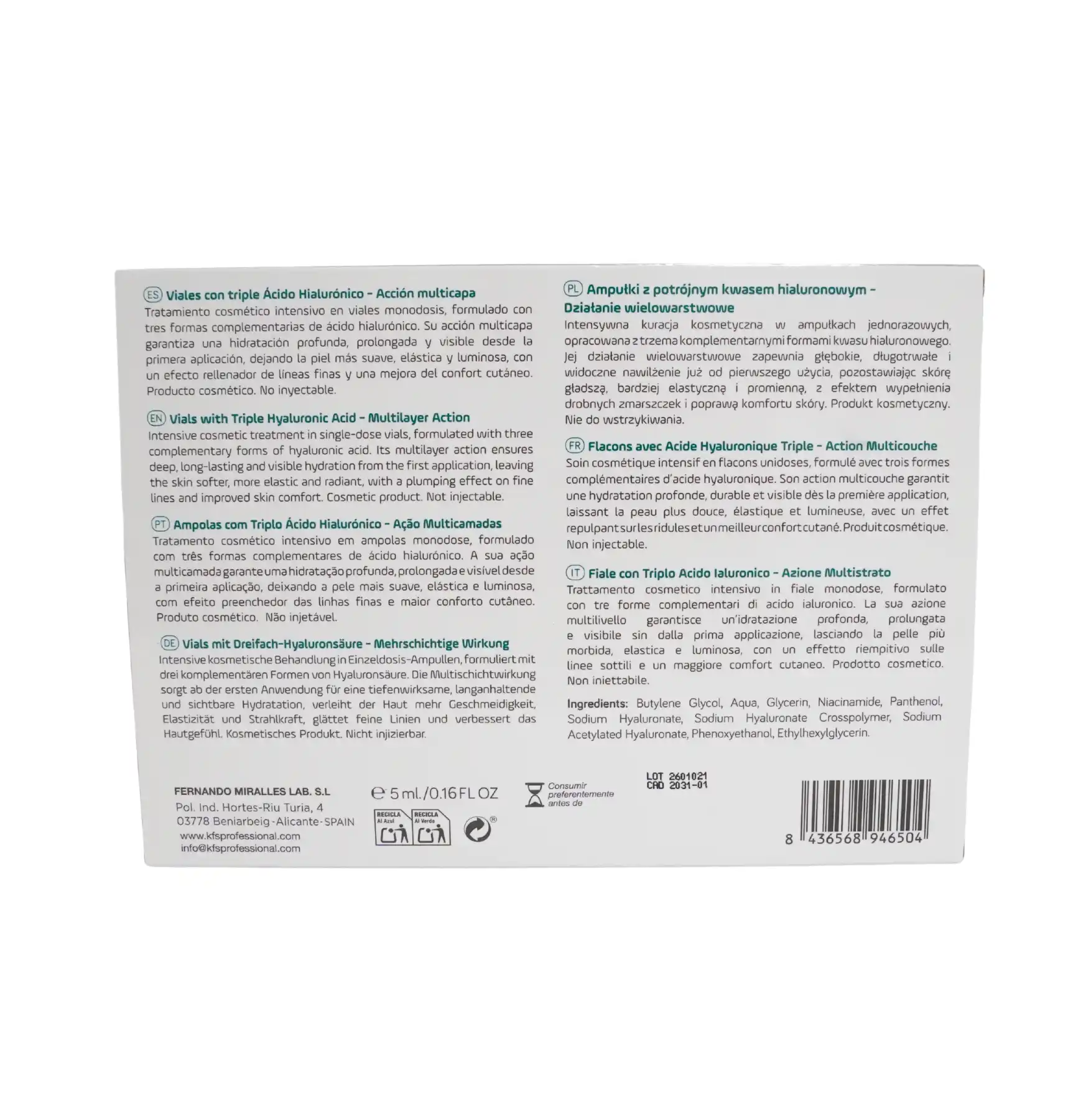 Nuestros viales de ácido hialurónico están formulados con tecnologías avanzadas para ofrecer resultados visibles en el cuidado de la piel. Cada caja contiene: